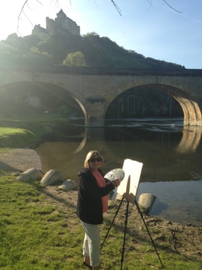 A lovely day painting the gorge near Lamanu des Bains, France 1994