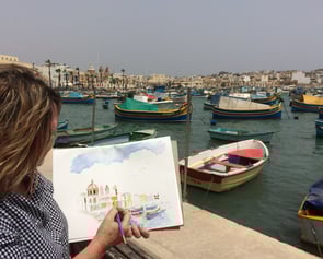 A windy day painting in Marsaxlokk, Malta, April 2018
